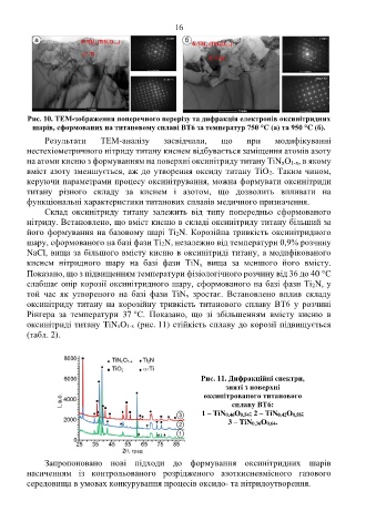 Рис. 10. ТЕМ-зображення поперечного перерізу та дифракція електронів оксинітридних