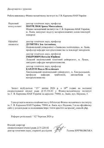 Захист відбудеться ‘‘15’’ квітня 2026 р. о 14 годині на засіданні
