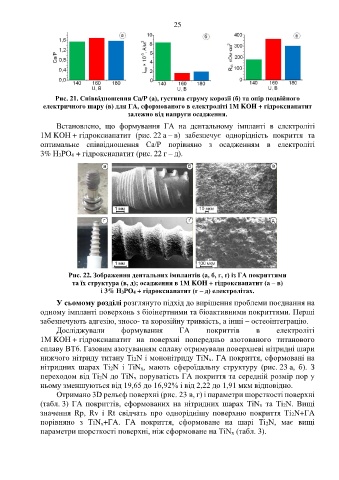 Рис. 22. Зображення дентальних імплантів (а, б, г, ґ) із ГА покриттями
