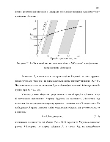 Рисунок 2.15 – Загальний вигляд залежності a – J (R-кривої) з виділеними