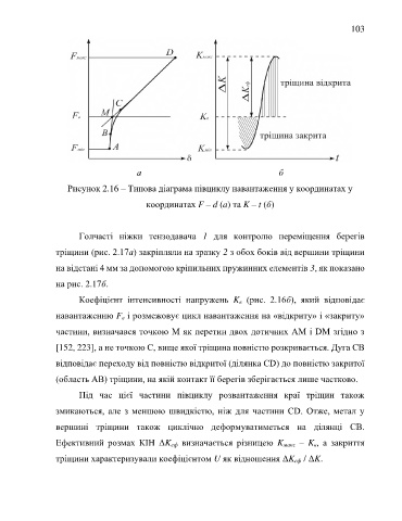 тріщини характеризували коефіцієнтом U як відношення ΔK еф / ΔK.