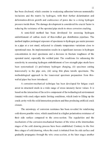 embrittlement of carbon steels of thin-walled gas distribution pipelines. The
