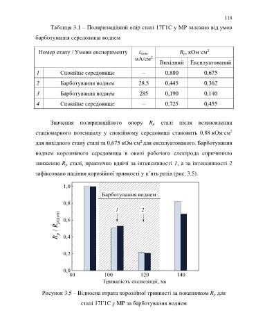 для вихідного стану сталі та 0,675 кOм∙cм для експлуатованого. Барботування