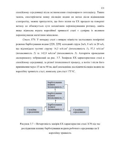 (інтенсивність 2) та 142,9 мA/cм (інтенсивність 3). Алгоритм проведення