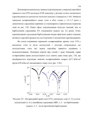 поляризаційна крива експлуатованої сталі лежить дещо вище (рис. 3.9), що