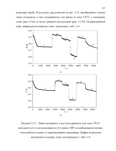 Рисунок 3.12 – Зміна потенціалу в часі експерименту для сталі 17Г1С