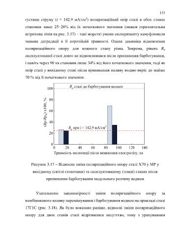густини струму (і = 142,9 мА/см ) поляризаційний опір сталі в обох станах
