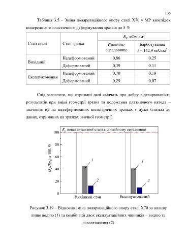 Рисунок 3.19 – Відносна зміна поляризаційного опору сталі Х70 за впливу