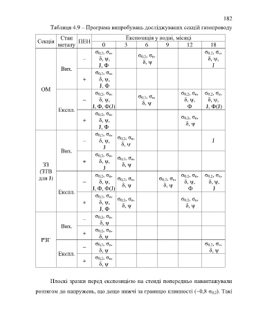 Таблиця 4.9 – Програма випробувань досліджуваних секцій газопроводу