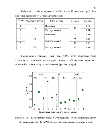 Таблиця 4.11 – Вміст водню у сталі ВСт3пс та ЗЗ дослідних труб після