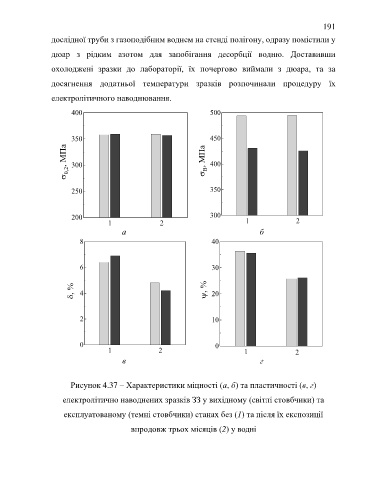 Рисунок 4.37 – Характеристики міцності (а, б) та пластичності (в, г)