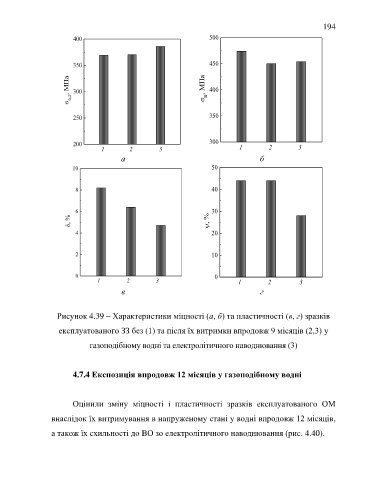 Рисунок 4.39 – Характеристики міцності (а, б) та пластичності (в, г) зразків