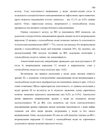 металу. Спад пластичності витриманих у водні зразків-свідків після їх