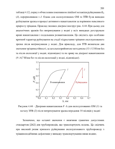 Рисунок 4.44 – Діаграми навантаження F–Δ для експлуатованих ОМ (1) та
