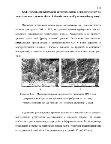 Рисунок 4.52 – Мікрофрактограми зразків експлуатованого ОМ в зоні