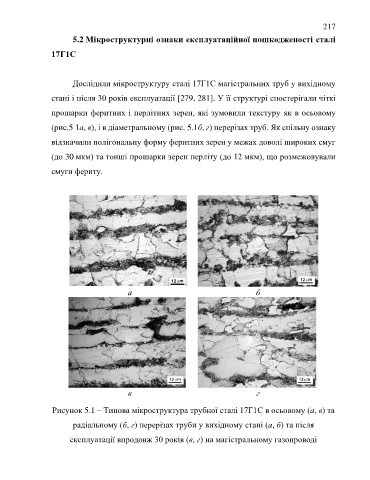 Рисунок 5.1 – Типова мікроструктура трубної сталі 17Г1С в осьовому (а, в) та