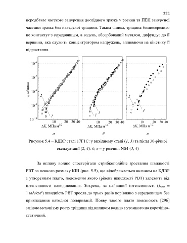 зміною механізму росту тріщини під впливом водню з утомного на корозійно-