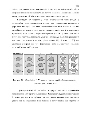 Рисунок 5.8 – Стадійність (I–V) розвитку експлуатаційної пошкодженості у