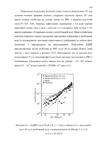 циклів порівняно з її границею втоми у неінгібованій воді. Фрактографічним