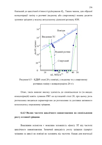 тріщини за цикл) на повітрі не залежить від частоти. Однак для взаємодії