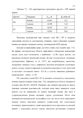 Таблиця 7.2 – ЕХ характеристики арматурних прутків у МР порової