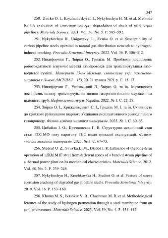 250. Zvirko O. I., Kryzhanivskyi E. I., Nykyforchyn H. M. et al. Methods