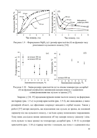 ня гідриду (рис. 1.9 а) та розмір кристалітів (рис. 1.9 б), які знаходились у нано-