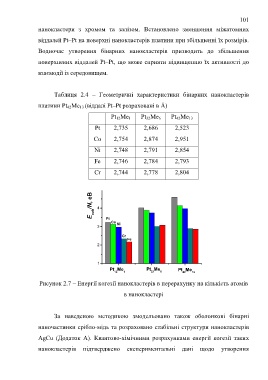 Таблиця 2.4 – Геометричні характеристики бінарних нанокластерів
