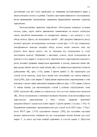 Порівняння отриманих закономірностей для сталей коліс КП-2 (рис. 3.15а) і