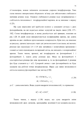 залежати від робочої точки інтерферометра. Вираз для зміни інтенсивності