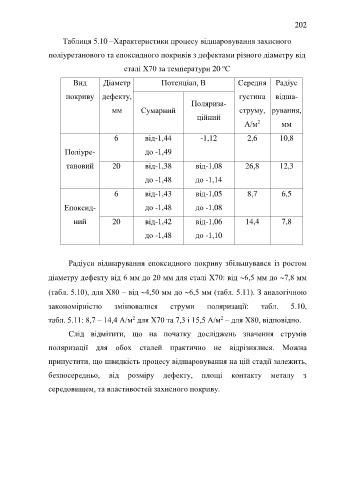 Таблиця 5.10 –Характеристики процесу відшаровування захисного