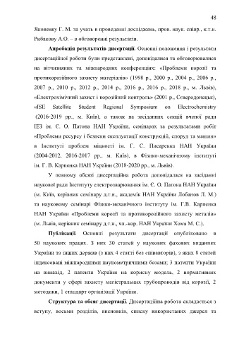 Яковенку Г. М. за учать в проведенні досліджень, пров. наук. співр., к.т.н.