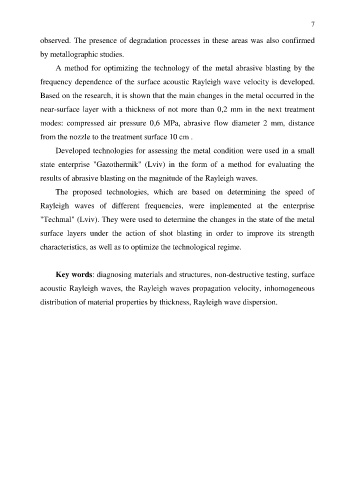 Key words: diagnosing materials and structures, non-destructive testing, surface