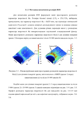 Мапи просторового розподілу параметра шорсткості Ra(k,l) для ділянки поверхні