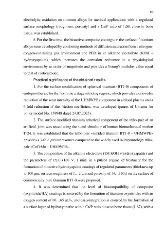 6. For the first time, the bioactive composite coatings on the surface of titanium