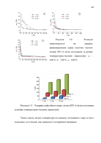 Рисунок 3.5 – Товщина дифузійного шару титану ВТ1-0 після азотування