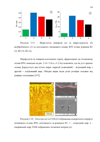 Рисунок 3.13 – Шорсткість поверхні (a) та мікротвердість (б)