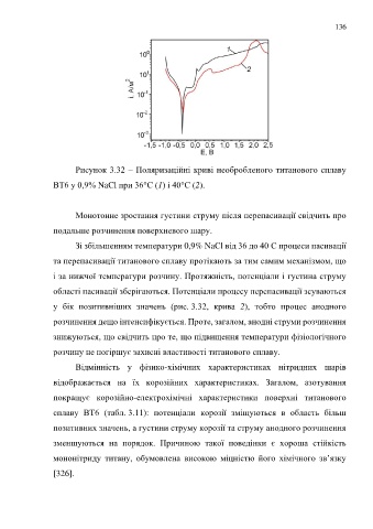Рисунок 3.32 – Поляризаційні криві необробленого титанового сплаву