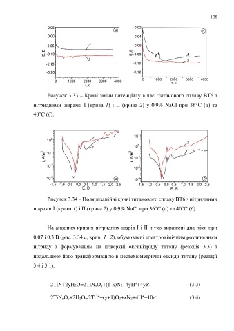 Рисунок 3.33 – Криві зміни потенціалу в часі титанового сплаву ВТ6 з