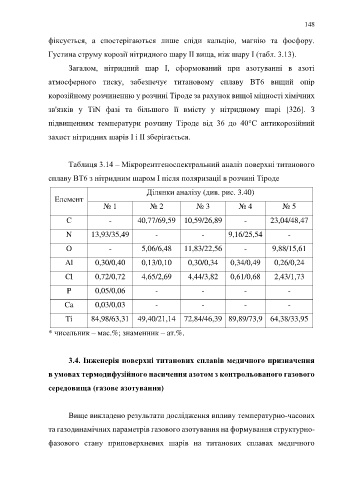 Таблиця 3.14 – Мікрорентгеноспектральний аналіз поверхні титанового