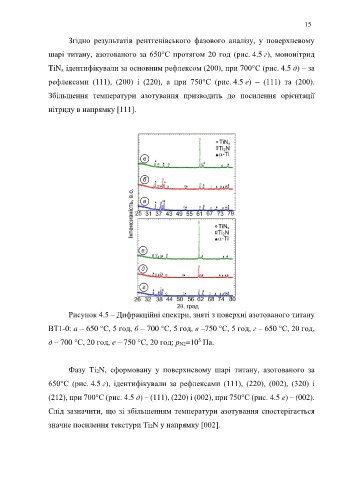 TiNх ідентифікували за основним рефлексом (200), при 700°С (рис. 4.5 д) – за