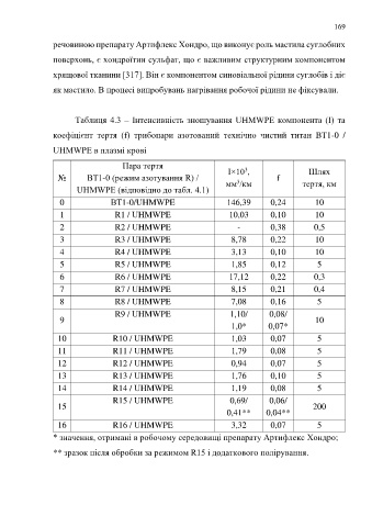 UHMWPE (відповідно до табл. 4.1) мм /км тертя, км