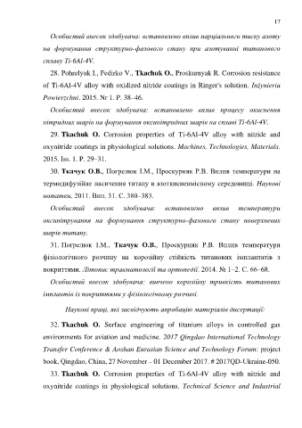 32. Tkachuk O. Surface engineering of titanium alloys in controlled gas