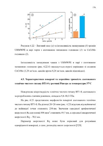 UHMWPE в парі тертя з азотованою титановою головкою (1) та СоСrМо