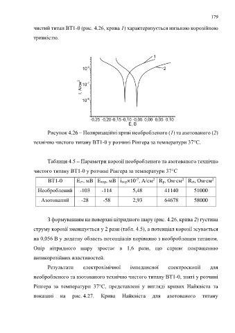чистий титан ВТ1-0 (рис. 4.26, крива 1) характеризується низькою корозійною