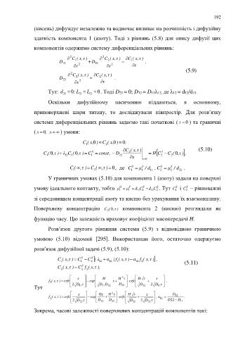 здатність компонента 1 (азоту). Тоді з рівнянь (5.8) для опису дифузії цих
