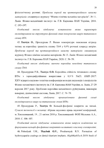 45. Проскурняк Р., Ткачук О. Кальцій-фосфатні покриття на титані.