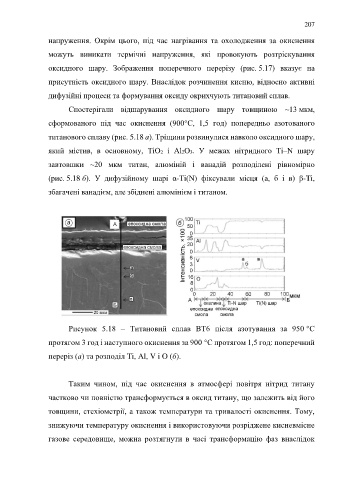 (рис. 5.18 б). У дифузійному шарі α-Ti(N) фіксували місця (a, б і в) β-Ti,