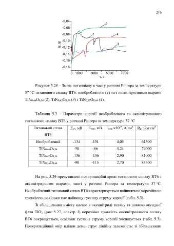 ВТ6 покращується, оскільки густина струму корозії зменшується (табл. 5.3).