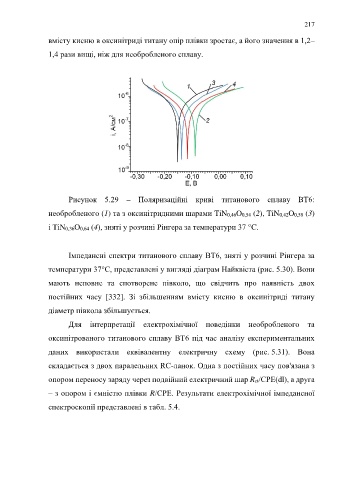 Імпедансні спектри титанового сплаву ВТ6, зняті у розчині Рінгера за